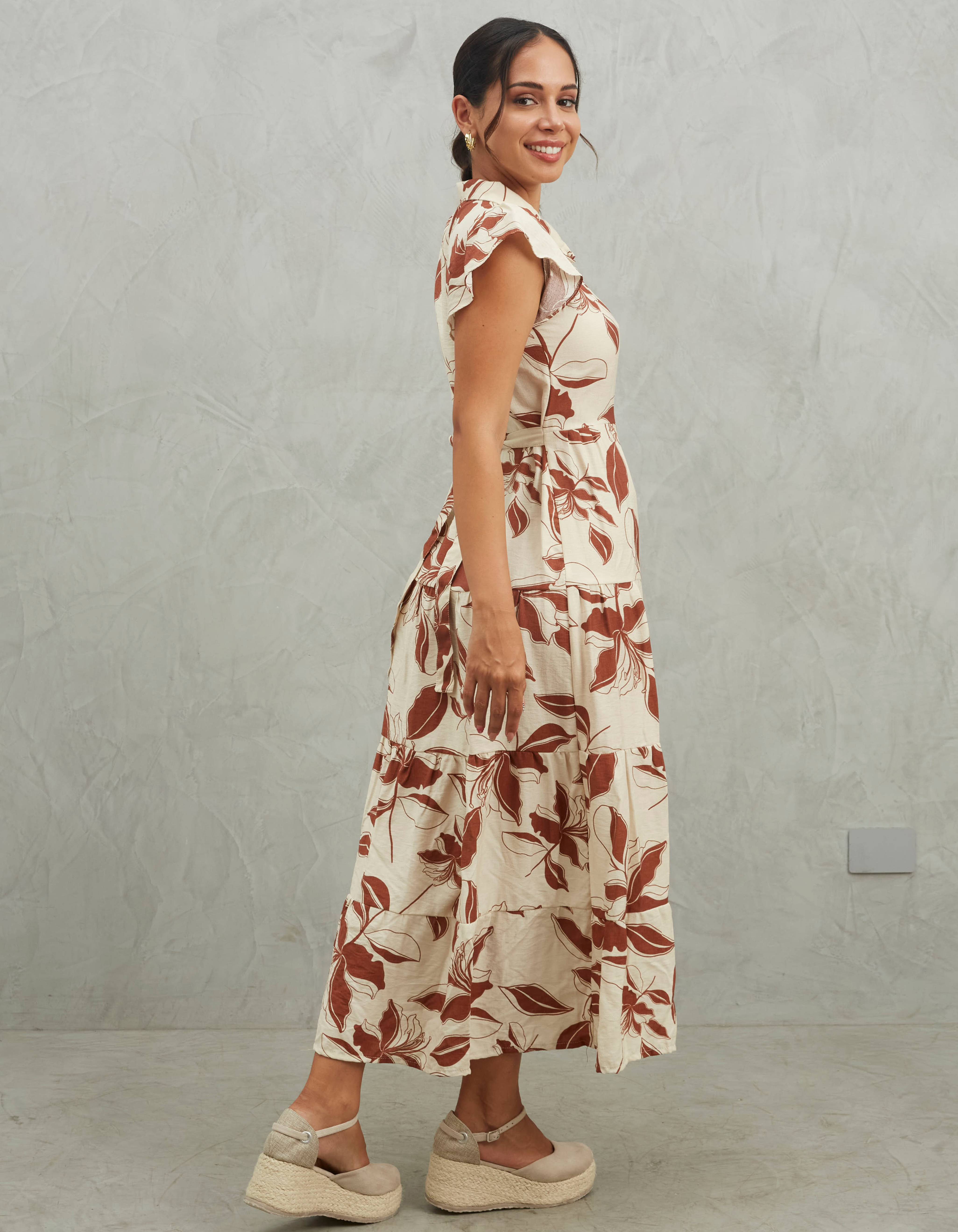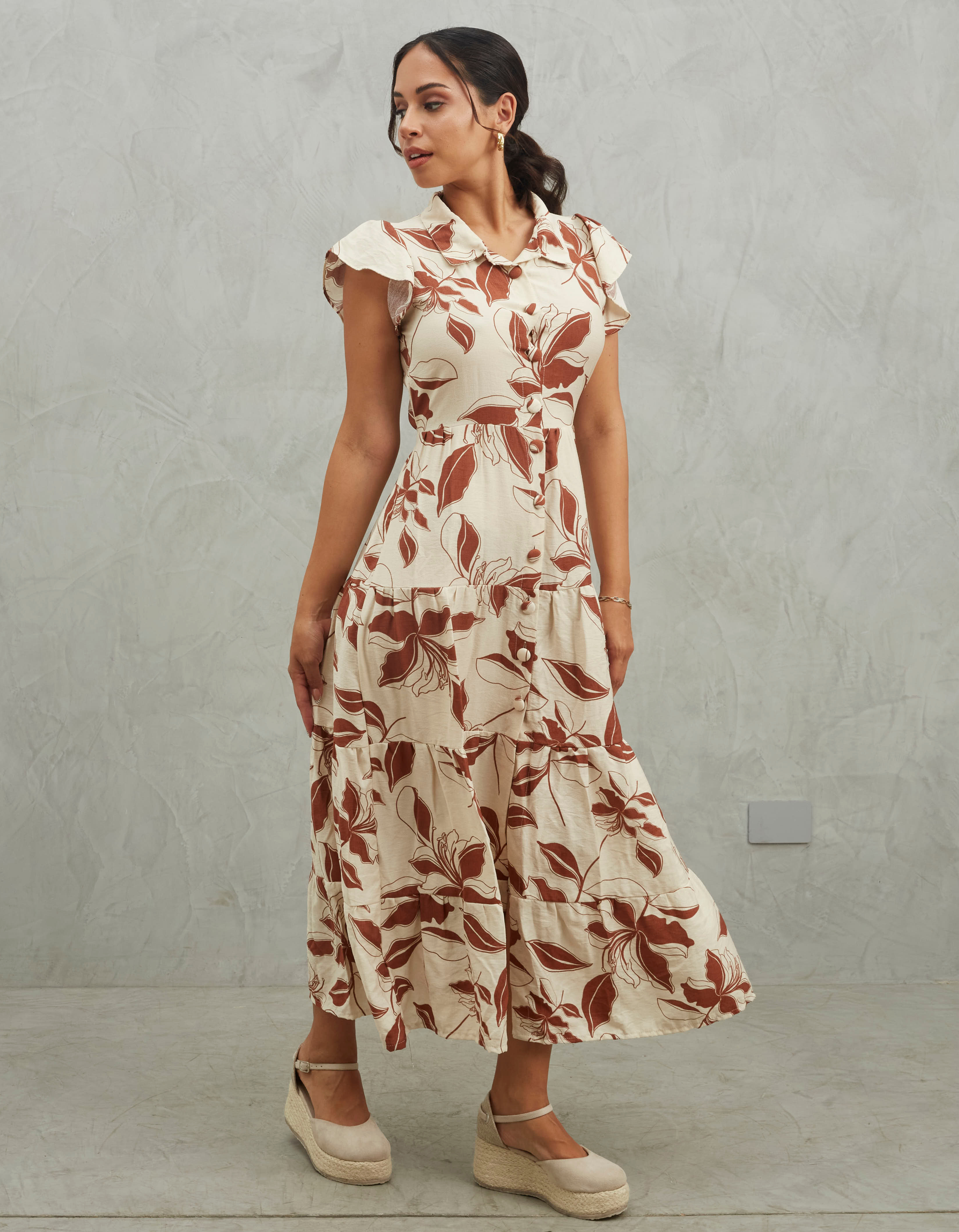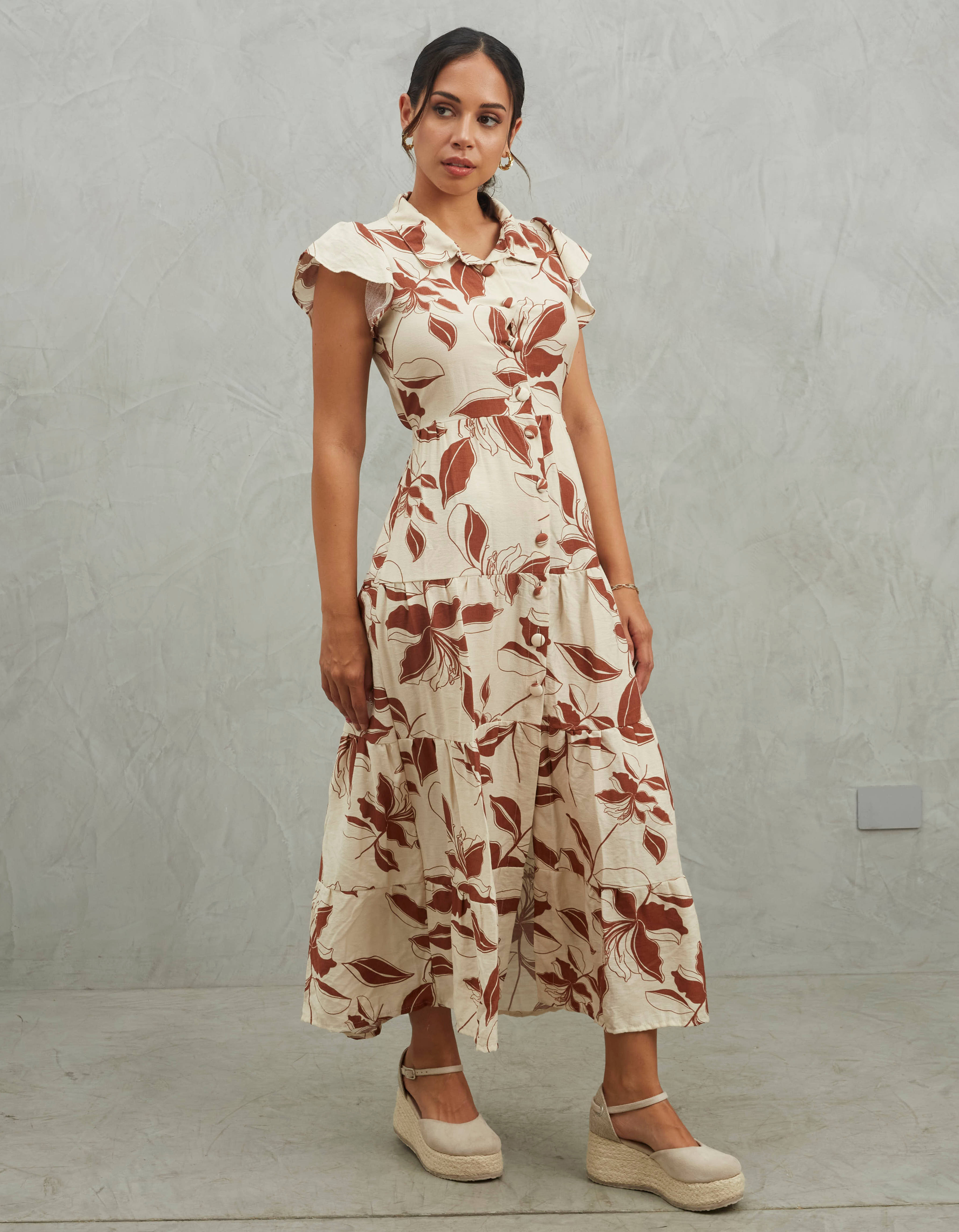 - Vestido camisero holgado con pie de cuello, con mangas con detalle, y correa en la cintura.
